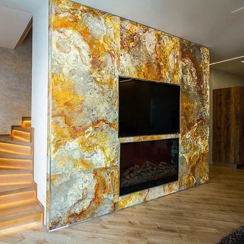 "We recently used Saharsh Interior & Exterior Studio stone laminates for our living room wall paneling, and the transformation is stunning. The finish looks just like natural stone, but it was much easier to install and budget-friendly."